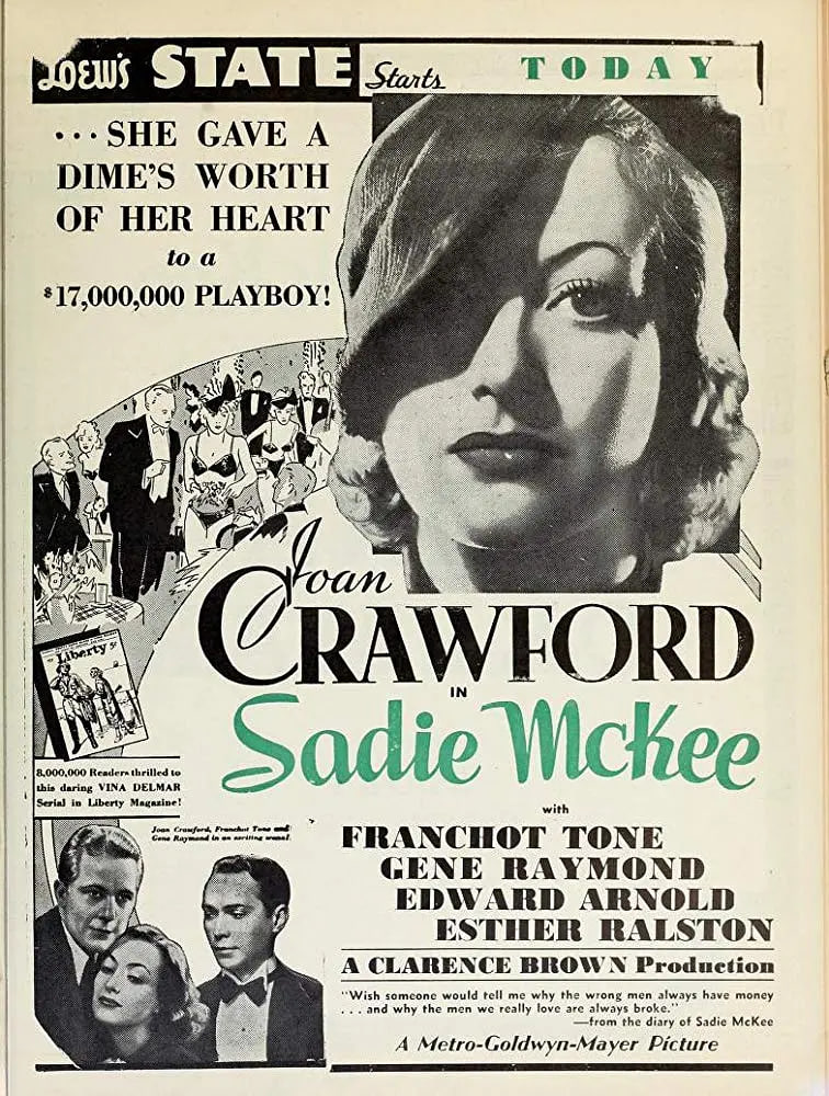 Sadie McKee的一生跌宕起伏。她是富有的阿尔德森家族的厨师之女,当律师的迈克.阿尔德森喜欢她,但她与男友汤米私奔至纽约。二人本来准备结婚,但是汤米勾搭上舞女多莉之后抛弃了Sadie。Sadie留在纽约,结识了迈克的老板,百万富翁布瑞南。布瑞南是一个酒鬼,然而Sadie为了钱,与之结婚。迈克得知后,认为她是一个拜金女,但是后来见她辛苦地帮布瑞南戒酒,改变了观点。后来,Sadie得知她的旧爱汤米有了麻烦,就离开布瑞南前去帮助他,却不知道这将置自己于多大的困境……